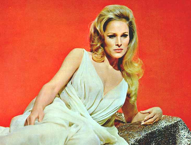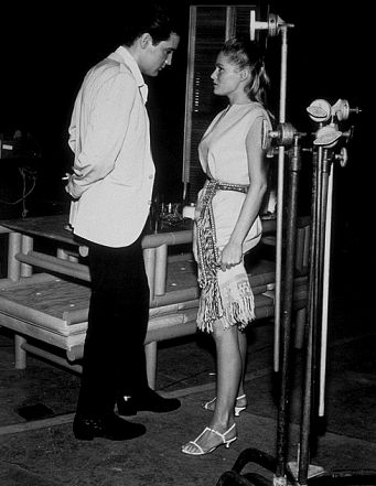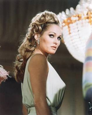 | American audiences first saw Ursula in the British film, Dr. No, the first James Bond movie, with Sean Connery. Before that she had been appearing in European films, mostly Italian, since 1954 (Le Avventure di Giacomo Casanova). Fun In Acapulco was her first American-made film. Her U.S. film career didn't take off after these two films like everyone expected, although she remains a big European star to this day. Some say it's the "Bond Girl" curse: leading ladies in the Bond films never seem to make it afterwards. Then again, maybe it's Fun In Acapulco that put the hex on her. After all, it was Elvis' 13th film, there were 13 songs on the soundtrack, and... (GASP!)... there are 13 letters in the film's title AND in "Ursula Andress"!! ( ...she was doomed from the start... )