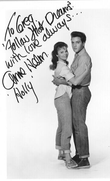 | When Anne was 14, her mother took her to New York and enrolled her in the Metropolitan Opera Ballet School, convinced that Canada wasn't big enough for Anne's talents. Ballet wouldn't pay the bills, however, so Anne soon took up modeling on the side to help pay expenses. By the time she was 17, Anne was bringing in $25,000 a year doing TV commercials. "I realized," she said, "that I wanted money more than the strict life of the dancer. So I let the dancing drift." From there, it was a natural progression to TV guest appearances, and in 1960, a role in the film, Desire In The Dust, a typical soap-opera film. In 1962, Anne starred as Princess Helene in the fantasy film The Magic Sword, opposite another Elvis co-star, Gary Lockwood (Wild In The Country and It Happened At The World's Fair). |
