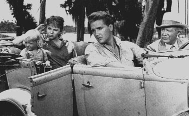 The same year, she played Holly Jones in Follow That Dream. Although all of Elvis' films would probably be considered sexist, or at least chauvinistic by today's standards (Gloria Steinem probably used them as ammunition even back then), Follow That Dream was also a little "anti-government" (in a charming-innocent-Will-Rogers kind of way). It's main premise is the backwoods little guy against the rules, regulations and the government beaurocracy. As the Kwimper family sets up its little homestead, and builds a small business, and even chases the bad guys out, they seem almost downright libertarian by today's standards. The "leave us alone, we ain't hurtin' nobody" stance is usually eyed with suspicion nowadays by political progressives, who probably watch this film and cheer for Joanna Moore's character (OK, I'm kidding. Nobody cheers for the nosy social worker!). The rest of us cheer for Anne of course!! But ya gotta watch it for the fun of it, and to see Elvis in one of his funniest performances. | ![]() |
