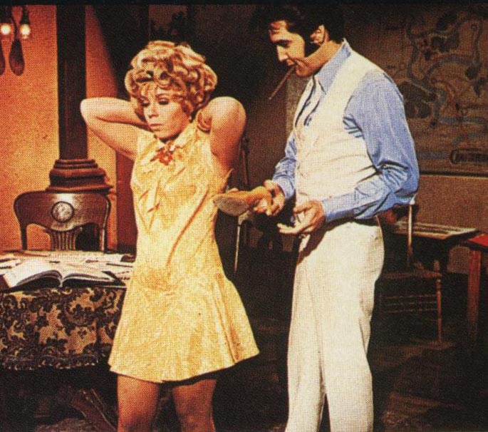 One of the cool things about The Trouble With Girls is that there are so many interesting characters! Elvis is the star, of course, but most of the supporting roles get almost as much screen time! Nicole Jaffe plays Betty, the goofy, flirtatious daughter of the local hotel owner. She plays it to the hilt, and has a few key scenes in the film. There's the hotel scene, with her crazy method for remembering people's names, and she signs on as piano player "for the munificent salary of nothing!", which sends union-boss Marlyn Mason into a tizzy!