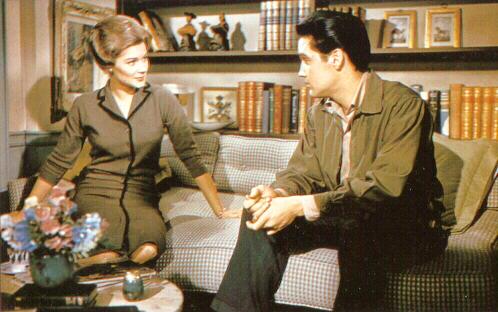 Hope played Irene Sperry, the psychiatrist who councels Glenn Tyler (Elvis) in Wild In The Country, an Elvis-version of Peyton Place, probably the only soap-opera Elvis ever made. (OK, Change Of Habit comes close!) After his success in Flaming Star, Elvis was ready to try another dramatic acting role. Unfortunately, his performance in Wild In The Country varies from really good to really bland. Still a curiosity, though. And there's no doubt that Hope and the other talent surrounding him (including Millie Perkins and Tuesday Weld) inspired him to turn in a very good performance! However, you gotta see the "drunk Elvis" scene, where he and Tuesday get plowed on Uncle Ralph's tonic, and turn the garden hose on Hope's house: "Mizz Sperry-erry-erry-oh!!" |