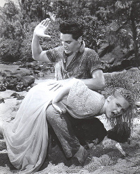 The rest of Jenny's acting career was mainly guest appearances on TV, beginning in the late '50s. After Blue Hawaii, she did make a couple of film appearances. Shotgun Wedding, a comedy set in the backwoods, and cowritten by the notorious Ed Wood Jr., and from the sounds of it, is even more low-budget than Kissin' Cousins, which of course means I've got to see it someday! She followed that up with an appearance in Take Her, She's Mine, a nice Jimmy Stewart family film with a couple of Elvis' Other Women, Cynthia Pepper and Irene Tsu, in which they all play teenage girlfriends of Sandra Dee. She continued to do guest shots on TV up through 1968. |