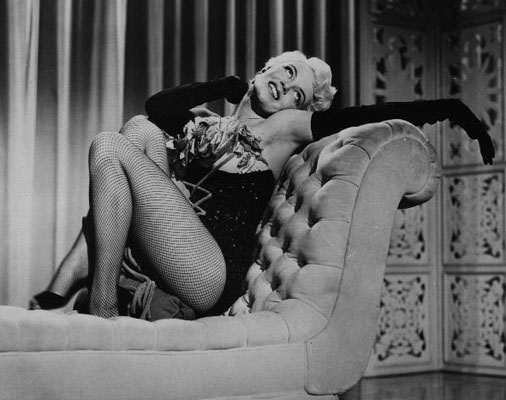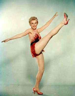 | In a scene towards the end of The Trouble With Girls, Sheree North's character slurs, "Actually, I was always more of a dancer than a singer", before going into a drunken tap-dance routine! Dancing was Sheree's forte long before The Trouble With Girls. By the time Dawn Bethel was 10 years old, she was dancing at USO socials in the Los Angeles area. At the ripe old age of 13, she was a regular with the company of the Greek Theatre! Married at 15, and a mother at 16 (to a daughter, also named Dawn), she continued her dancing at clubs around Los Angeles, under the name of Shirley Mae Bessire. In 1951, she had an unbilled bit part in the Red Skelton film, Excuse My Dust. |