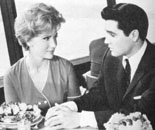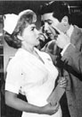 | As nurse Diane Warren in It Happened At The World's Fair, Joan plays hard to get with Elvis as he goes to great lengths to see her, finally resorting to the tactic of having a young Kurt Russell kick him in the shins. Elvis then proceeds to woo the lady, of course, and --- (oh no! I spoiled the ending for you!!) Joan sings a few lines of "Happy Ending" with Elvis at the conclusion. However, both stars had to yield to little Vicky Tiu, who played Sue Lin, as the real scene-stealer. (Most Elvis fans assume she is the same girl that appears as the older sister in Girls, Girls, Girls, but that is actually her sister Ginny Tiu. The younger sister in that film is played by Elizabeth Tiu.) |