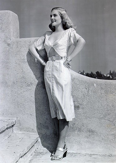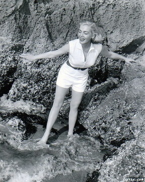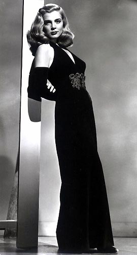 | Among connoisseurs of fine 1940s film noir, Lizabeth Scott is THE woman! Quite often the femme fatale, but always the alluring beauty, she seemed to single-handedly carry almost every film she was in. Dead Reckoning, with Bogie, is one of my favorites! ("Back in my pocket...") Later on, in Loving You, she plays Glenda, the publicity agent who sees the potential in Elvis' character, Deke Rivers, and makes him a star using all the exploitation tricks she's got up her sleeve. Sorta like the Colonel, only infinitely better lookin'! |